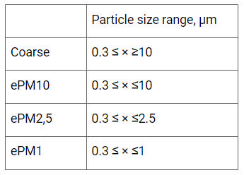 - ePM1 indicates that the above-mentioned 70% is measured if particles are within 0.3 ≤ × ≤1 µm in size