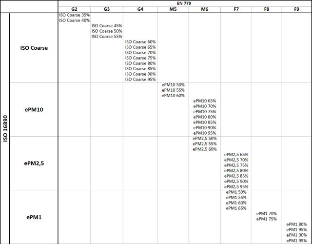 This newer standard replaces the previous EN 779 "classes" with new "groups", which are now particle sizes.